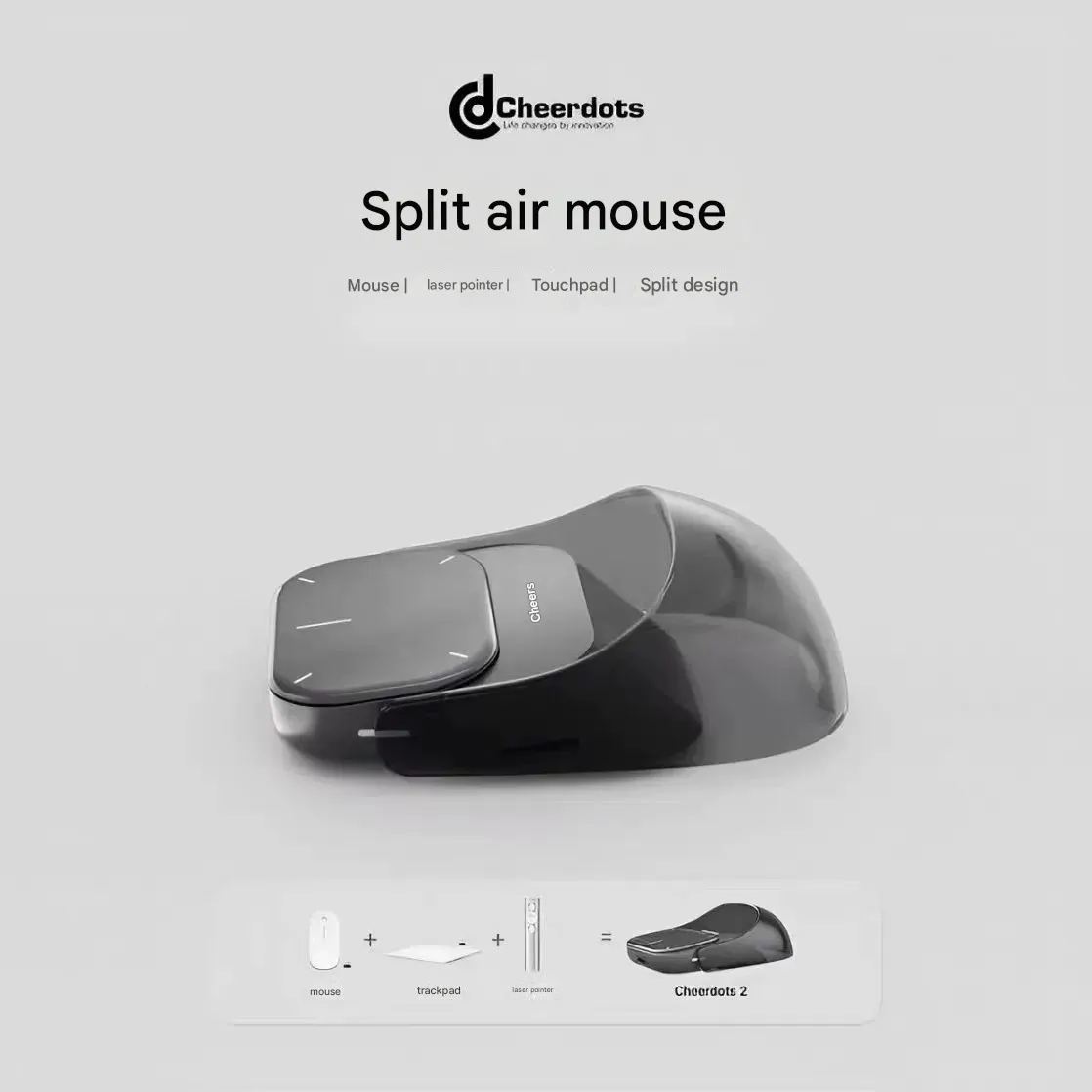 Cheerdots2 3-in-1 Split Air Mouse & Presentation Remote | Bluetooth PPT Clicker with Laser Pointer