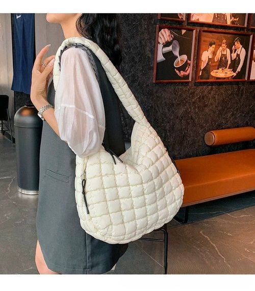 Fashion Pleated Cloud Bag Shoulder Crossbody Tote Bag with Two-Way Zipper, Large Capacity, Made of Down Cotton Fabric