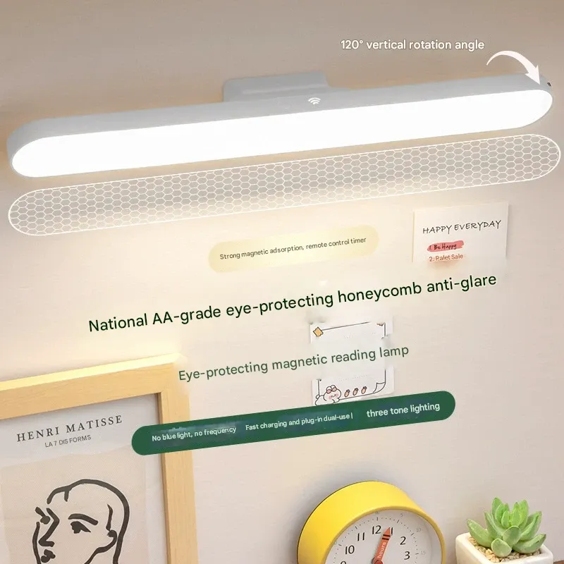 LED Eye-Protecting Rechargeable Reading Lamp Magnetic Student Study Light Bedside Night Light