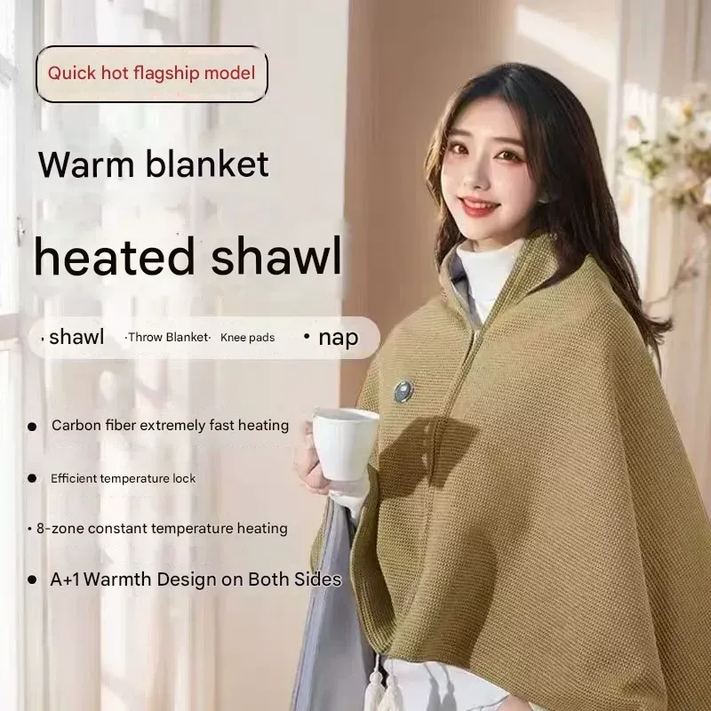 Portable Electric Heated Shawl Mobile Charging Heating Blanket for Warmth Washable Wearable Compact Home & Outdoor Blanket
